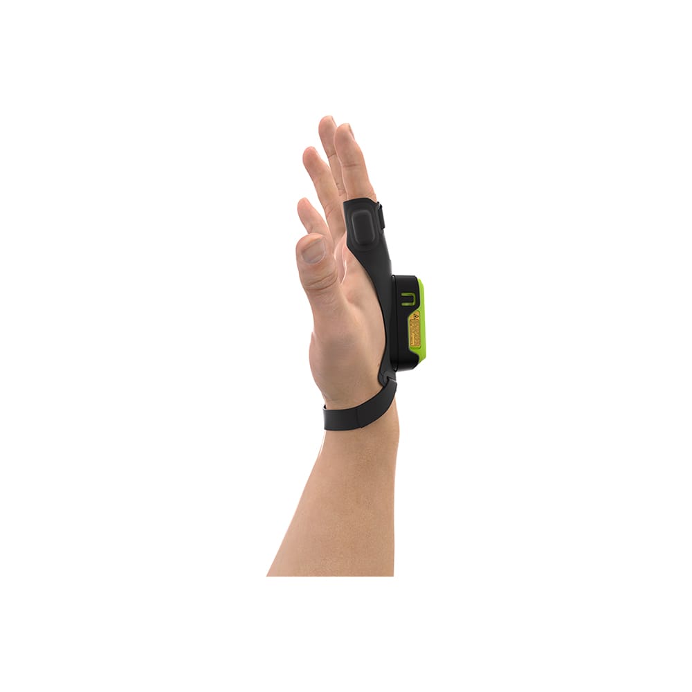 Innowacyjny uchwyt na wierzch dłoni pozostawia całą dłoń wolną — w przeciwieństwie do innych skanerów na wierzch dłoni, które mają niewygodny pasek na dłoni lub całkowicie ją zakrywają. W przypadku całkowicie gołych dłoni pracownicy mają lepszy i pewniejszy chwyt przedmiotów, które obsługują — zwiększając produktywność i zmniejszając ryzyko stłuczenia.